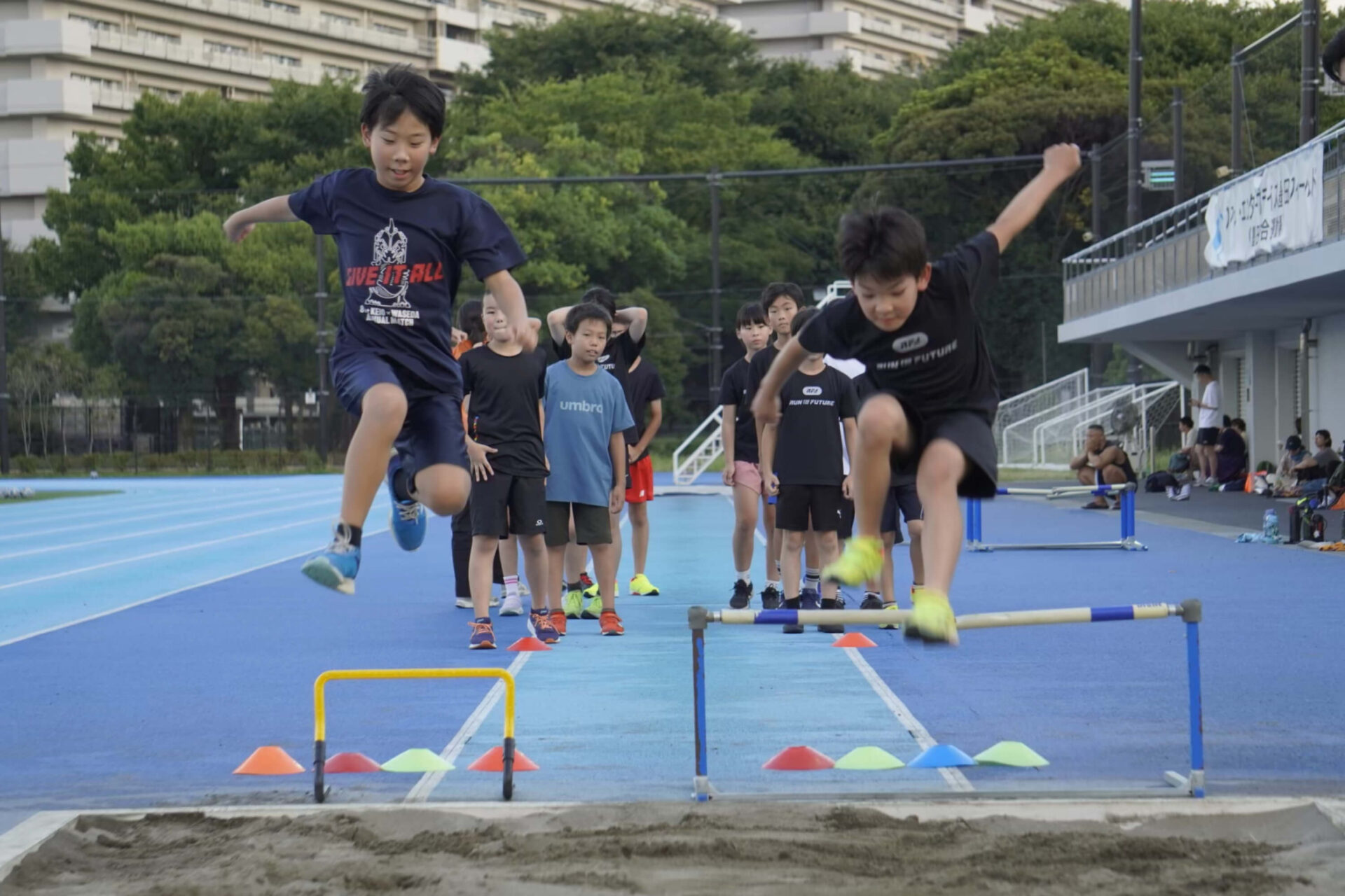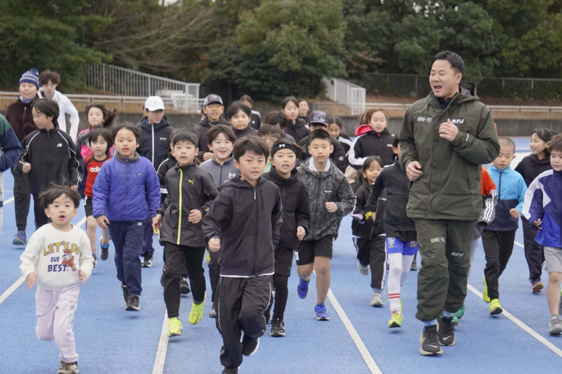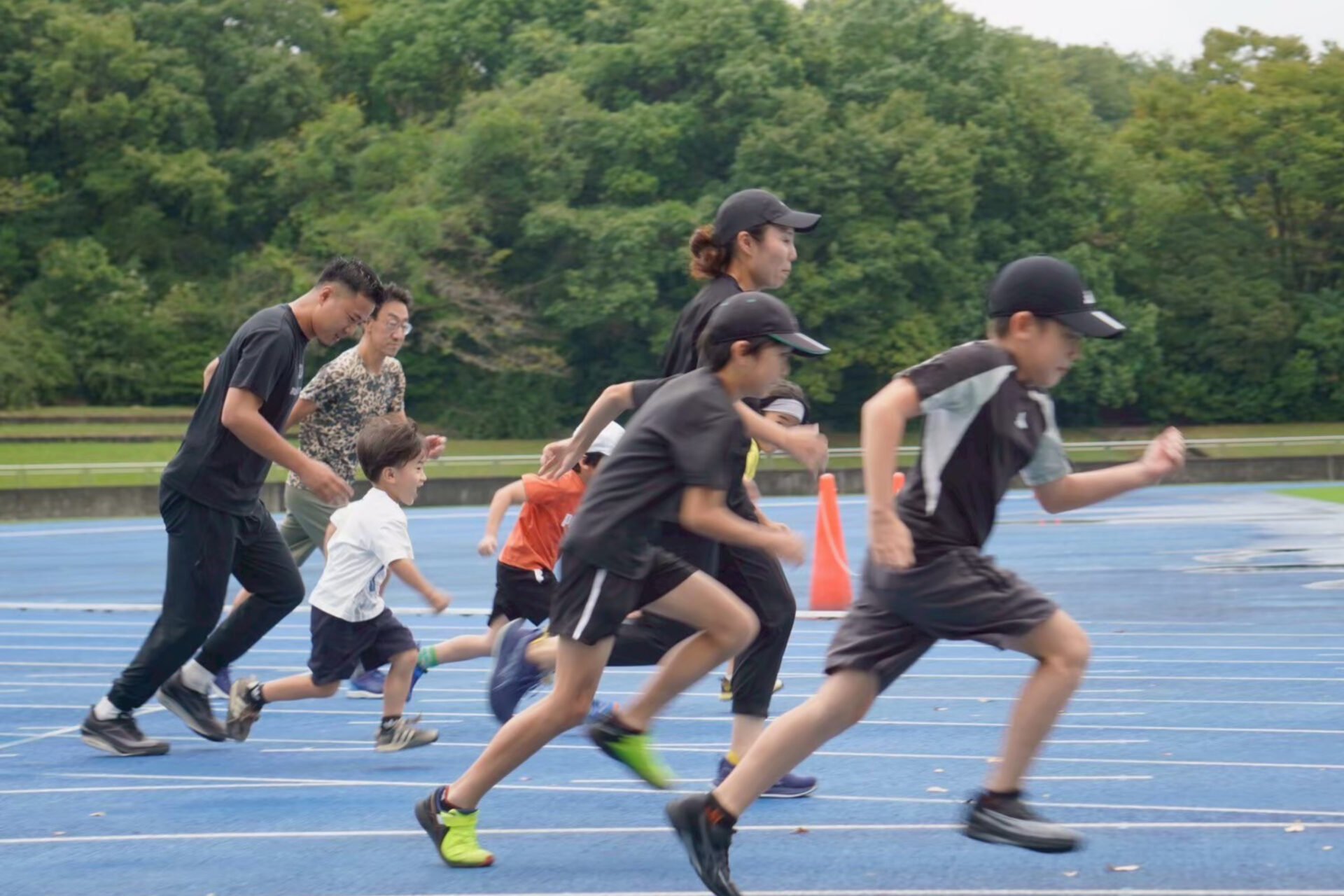 下は年中から、上は大人まで、多世代の皆様にご参加いただける体制をとっています。中には、親子三世代で参加してくださっているご家庭もあり、世代を横断して陸上競技を楽しむことができます。