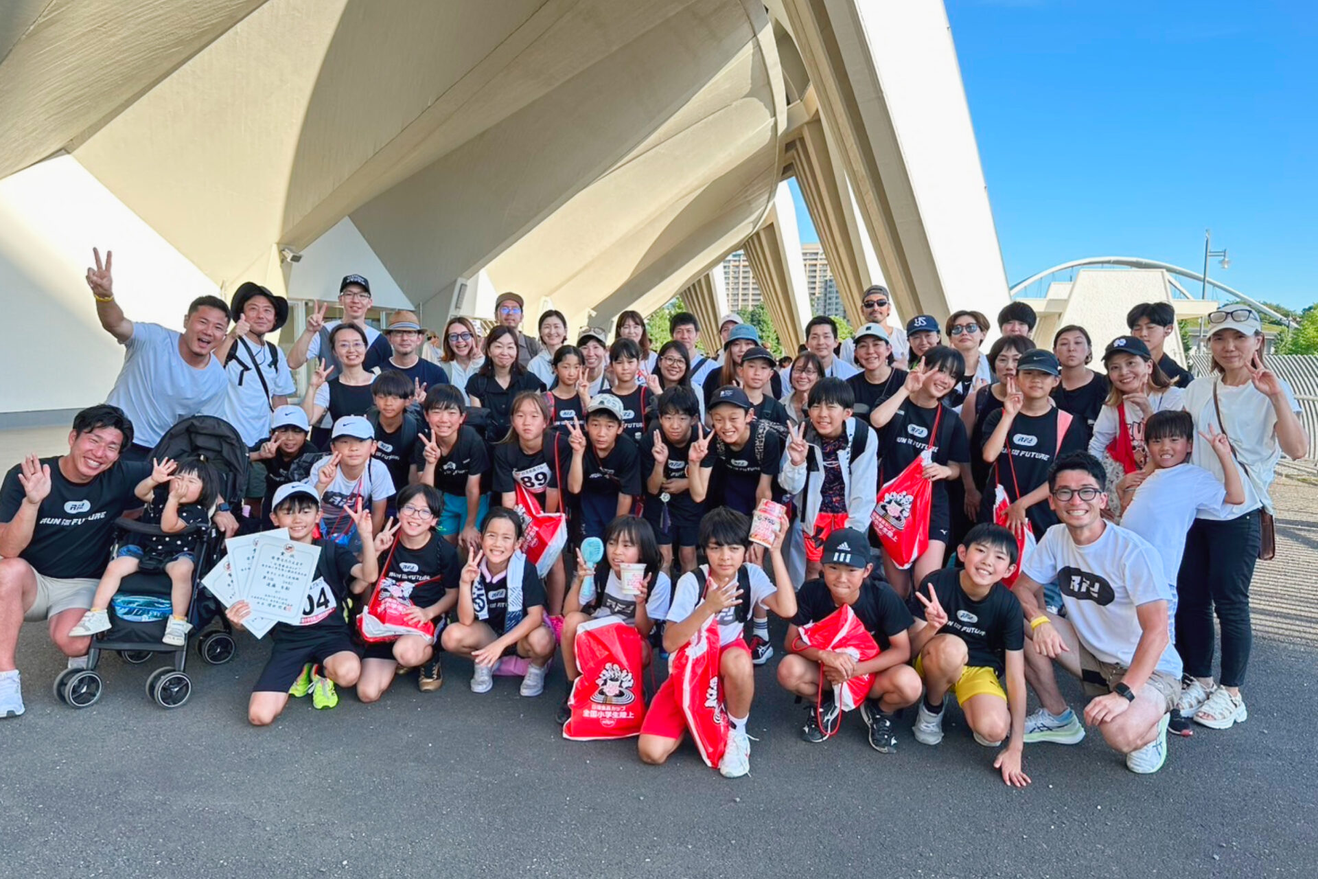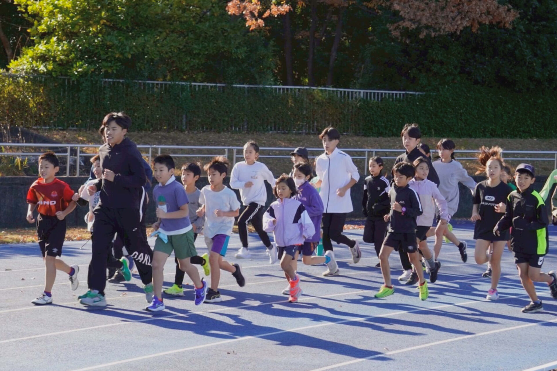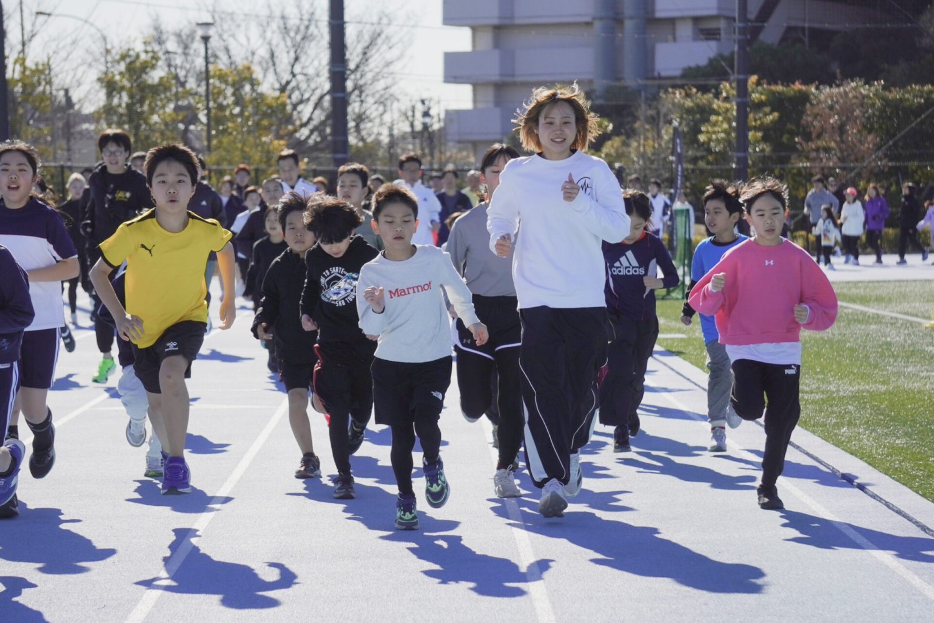 下は年中から、上は大人まで、多世代の皆様にご参加いただける体制をとっています。中には、親子三世代で参加してくださっているご家庭もあり、世代を横断して陸上競技を楽しむことができます。